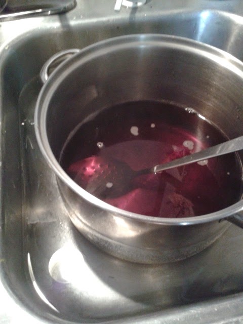 While that is cooking, add the rest of the herbs into your gallon jar and pour 3 pints of hot water in. I tried putting the herbs in my handy infusion strainer but, the slippery elm has it's own pectin in it and gels up, making it hard to strain through. I found just pouring all the herbs in works better.